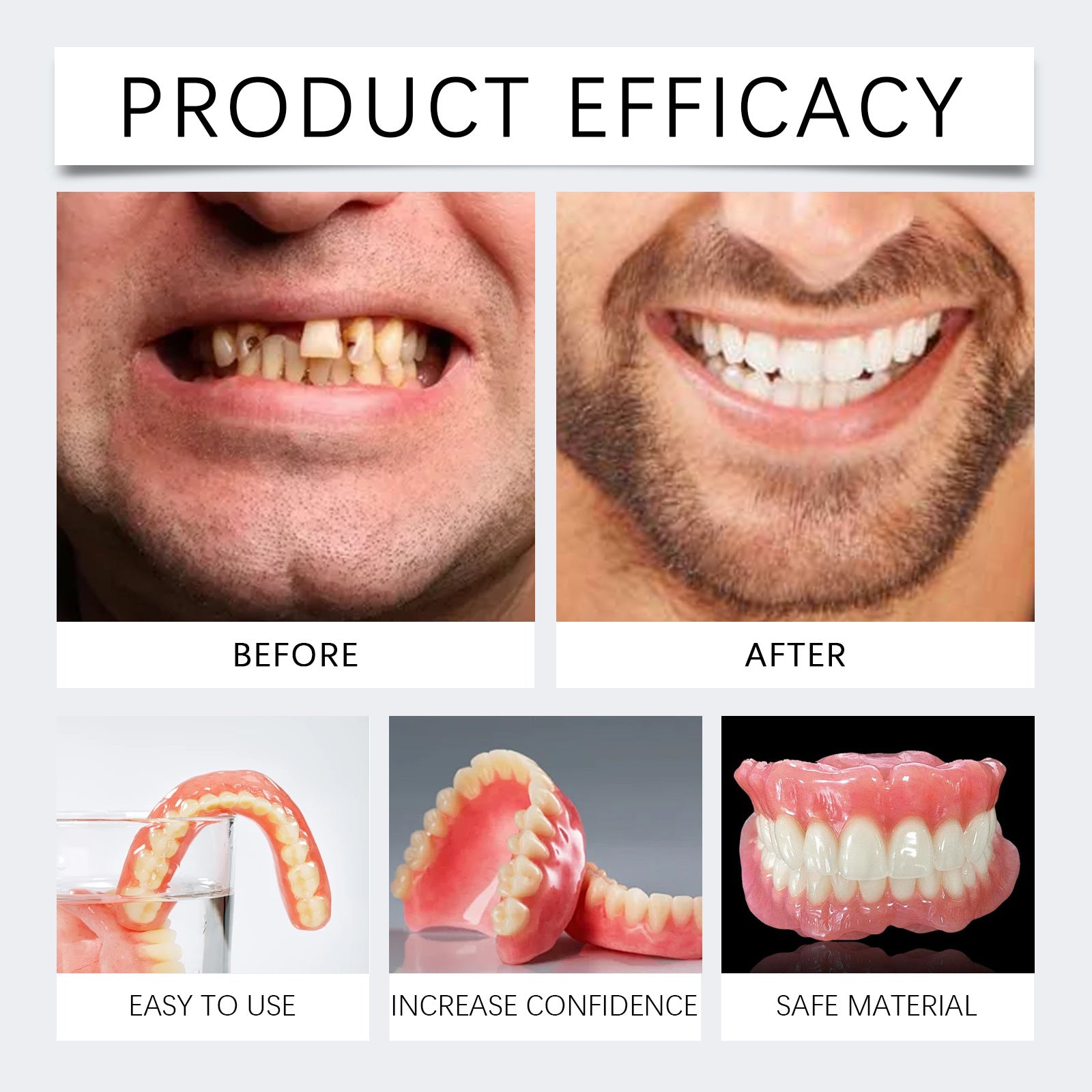 With the EELHOE Denture Kit, enjoy a beautiful, natural-looking smile anytime — without pain, high costs, or long treatments.